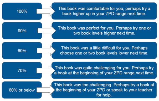 Each book has a book level, so children will know if a book is within their range. For example: Child A has a ZPD range of 2.3-4.1, so they can choose to read any book with a book level 2.3-4.1.